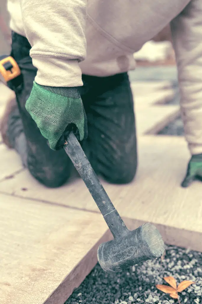 Laying patio pavers with an Estwing deadblow hammer