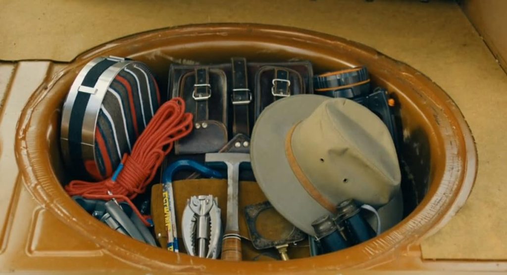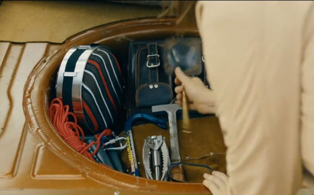 Aggie tells the team that she has the right tools for this job and goes to the trunk of her car. Aggie lifts the spare tire compartment in her trunk to reveal a large assortment of tools. The film cuts to a closeup of an Estwing Gooseneck Pry Bar and the iconic Estwing Leather-Wrapped Rock Pick.